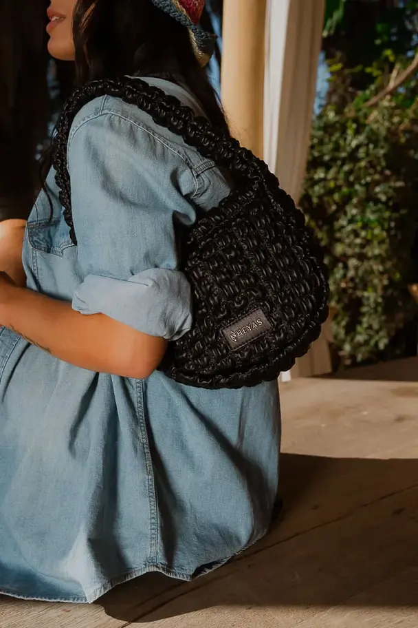 Diseño moderno con textura acolchada fruncida, confeccionada en Pu con acabado brillante. Complementa perfectamente looks streetwear, casuales o incluso outfits mas formales con un toque de moda.